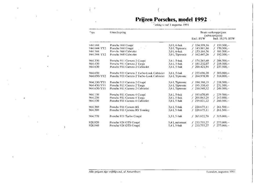 Airco bijvoorbeeld was niet standaard! Schuifdak ook niet. Mijn 964C2 uit 90 was meer dan 100k nieuw en basisprijs was volgens carbase 82k. Porsche zorgt er echt wel voor dat er altijd wat te kiezen valt !