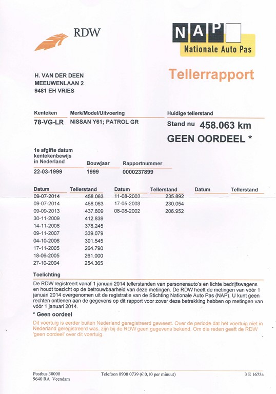 NAP is leuk, maar hij moet wel boekjes hebben dat de auto met die miles stand geimporteerd is.