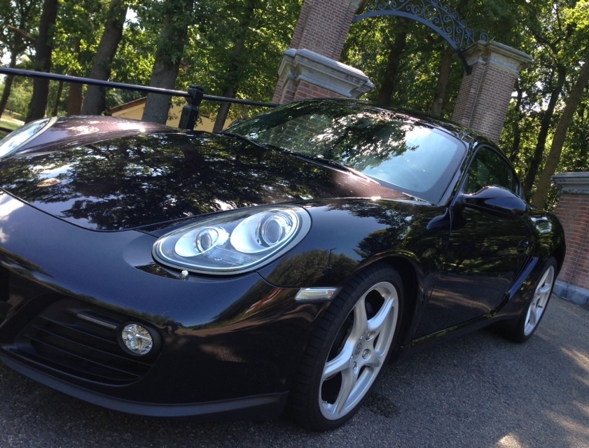 Te koop aangeboden (van liefhebber) schitterende handgeschakelde zwarte porsche cayman van bouwjaar 2010.