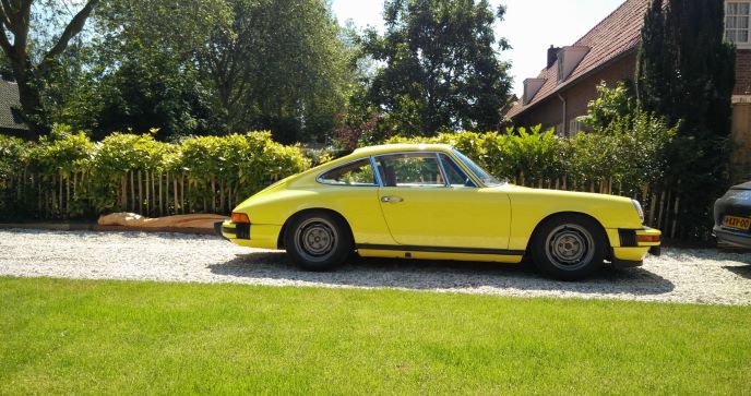Na wikken en wegen, toch te koop.... mijn roestvrije, originele en ongerestaureerde 911 2.7 S uit 1975. G-model met de chromen/RVS lampringen, deurkrukken, enkele buitenspiegel en raamlijsten Kleur: signal gelb, bruin/beige stof interieur (met patina....) Opties: Elektrische ramen en schuifdak (en airco, niet functioneel meer) Teller stand: 12.567 (stand is met minstens 1 of wellicht een 2 ervoor?) Prijs: 49.000 (staat ook op mobile voor iestje meer, clubleden hebben natuurlijk een voordeel Edit by Mod 21 Nov: € 45.000,- Oorspronkelijk uit de VS, daarna naar Zweden en nu dus in NL. Alles aangepast naar Europees model (bumpers, nwe lampen, knipperlichten, nw dashboard etc). Carrosserie is zoals gezegd ongelast en roestvrij, perfecte passingen. De bodem en wielbakken zijn zonder tectyl, dus alles in carrosseriekleur, in gebruikte maar zeer goede staat. Motor is zeer recent geheel gereviseerd door PSTG en verbeterd en o.a. voorzien van: - Mahle HC zuigers en bussen (10.5) - 993 Dilavar kopbouten met juiste inserts in onderblok - nwe kettingen - nwe tandwielen - nwe kleppen en zetels - nwe drijfstang en krukaslagers - nwe koppeling en drukgroep - etc Blok is lekdicht en ik schat nu zo'n 180-185 pk. SSI warmtewisselaar met M&K RVS uitlaat. Extra oliekoeler in scherm rechtsvoor. Versnellingsbak (915 type) met verbeterde schakelmechaniek is ook zeer goed. Auto is nu iets verlaagd en met verbrede Porsche 'steelies', originele Fuchsen zitten er bij. Originele instructieboekje zit er ook bij, evenals het geboortecertificaat, de rekeningen van onderhoud en blokrevisie etc. Alles werkt uiteraard en de 911 is zeer betrouwbaar, ik rijd hem dagelijk met het mooie weer. Bij interesse zijn meer fotos beschikbaar. Hartelijke groet, Niels Blaricum 06 50250140