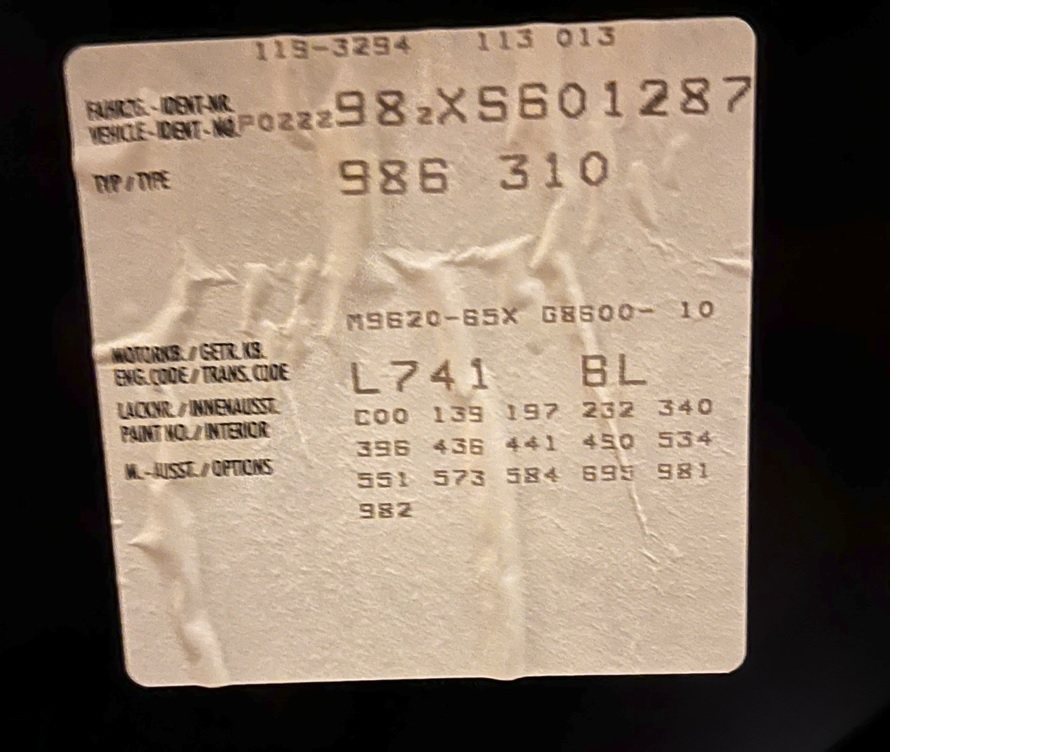 Wat dus allebei niet kan kloppen, want de wielen zijn code 396, en PCCB was er naar mijn idee niet voor de 986.