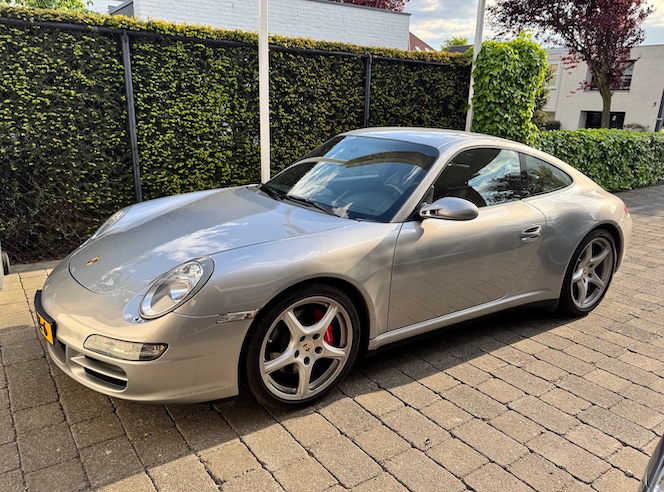 Nog een paar aanvullende details. De auto staat bij mij privé te koop. De foto's zijn (heel lui) van toen ik hem aanschafte. En de auto is nieuw aangeschaft in Denemarken door de eerste eigenaar en stond binnen een aantal dagen in Nederland op kenteken, dus vandaar gewoon in bezit van een nationale autopas met logische km-stand. En een opvraagbare onderhoudshistorie bij Nederlands Porsche dealers vanaf de start.