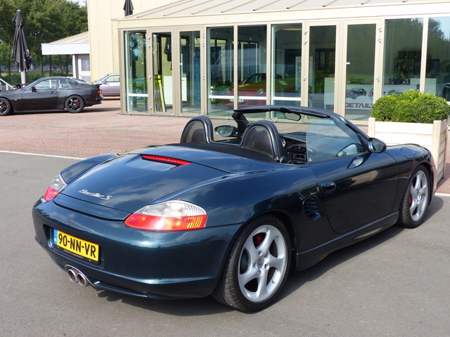 Misschien is mijn Boxster S van 2004 iets voor je? Ik heb hem 2,5 jaar geleden gekocht, Nederlandse auto, nu 89000 km gelopen, laatste grote beurt bij 86650 km (en bijna alle eerdere) bij Porsche dealer, kleur donkergroen pareleffect, 18 inch turbo wielen, zwart leer interieur en zwart dashboard, Porsche hifi systeem en CDR 32, klasse 3 alarm, handgeschakeld, tussenmodel met glazen achterruit. Dit tussenmodel had andere voor-en achterbumpers en nu ook bijpassende GT3 sideskirts, andere eindstukken van de uitlaat en een KW schroefset, stuurt en rijdt strak, maar is niet overdreven laag. Nette auto! Richtprijs 22000 euro.