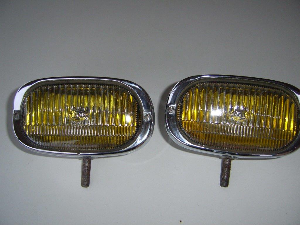 Te Koop: een set originele mistlampen hella 128 met gele reflectors en witte glazen. Vraagprijs 485 euro.