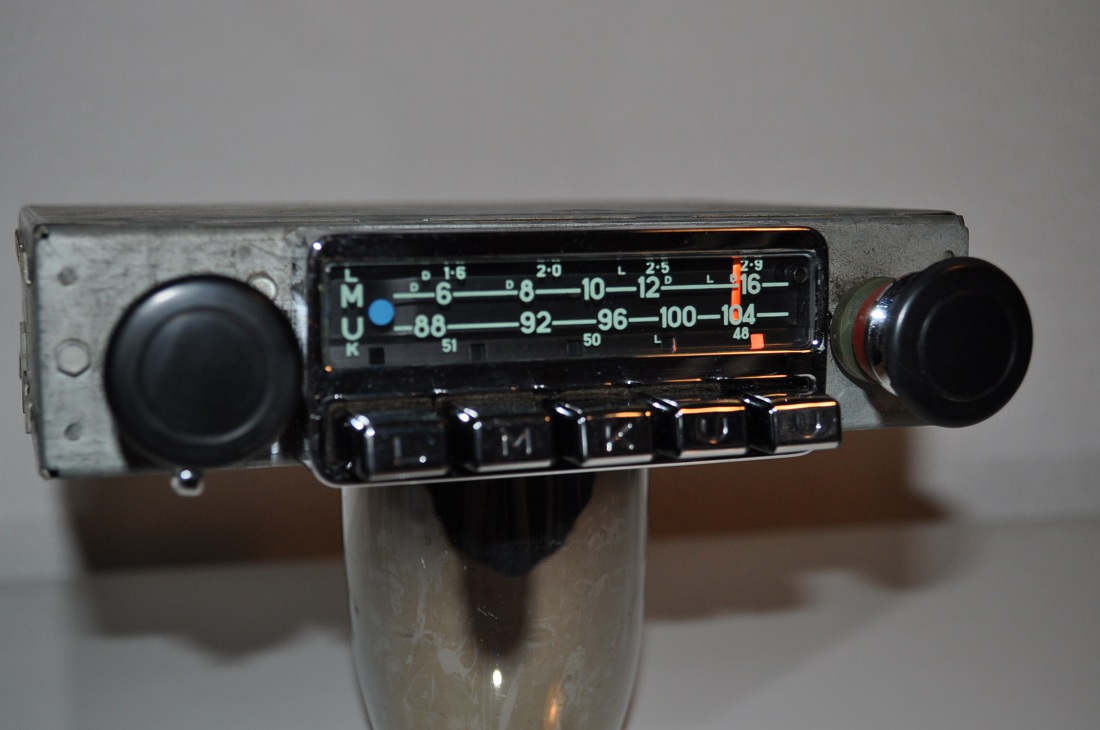 Zeer mooie en zeldzame (kom je niet veel tegen) Blaupunkt Karlsruhe voor 911 F, met chromen toetsen (LMKUU) in zeer goede staat en met klein chromen frontje rond de zenderschaal, wordt geleverd met stekkertje voor de speakers.