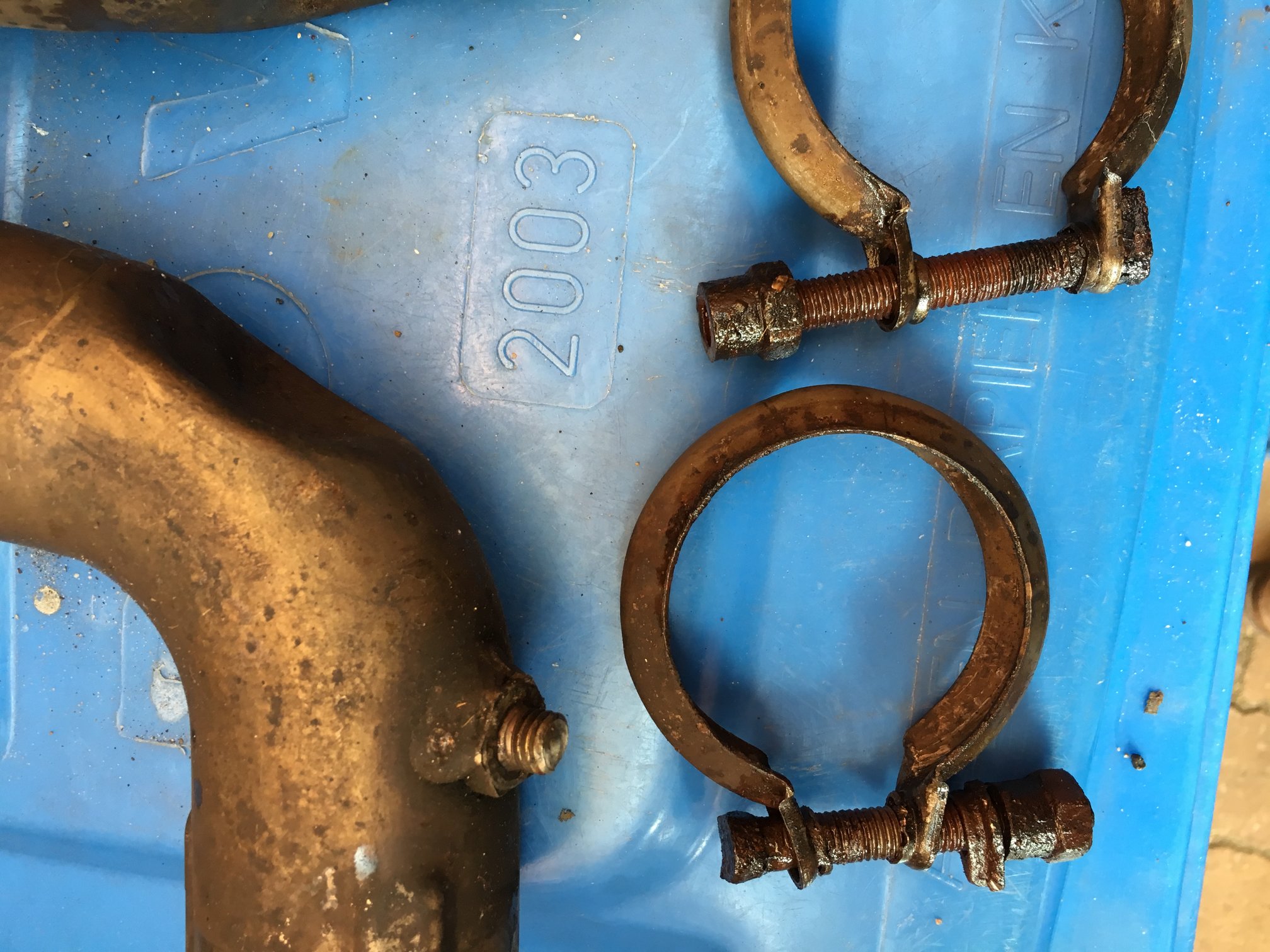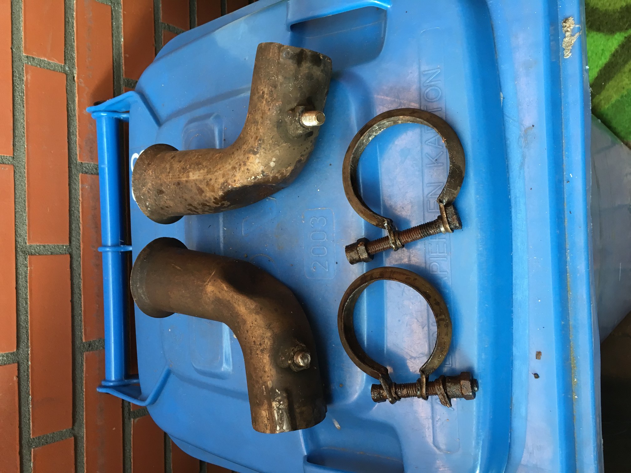 Opmerkingen: waarschijnlijk kun je de "bochten" van je bestaande originele einstukken gebruiken. Mocht dit niet het geval zijn, dan moet je er rekening mee houden dat van een van de bochten, de bevestigingsbout is gebroken waardoor het te gebruiken schroefdraad een stukje korter is.