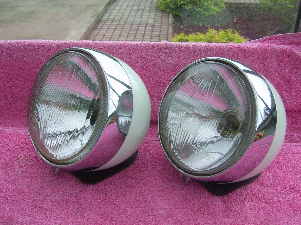 Te Koop: een setje originele Marchal "hood lights", compleet met bevestigingsplaten, in zeer goede conditie. Prijs 635 euro verzending inbegrepen
