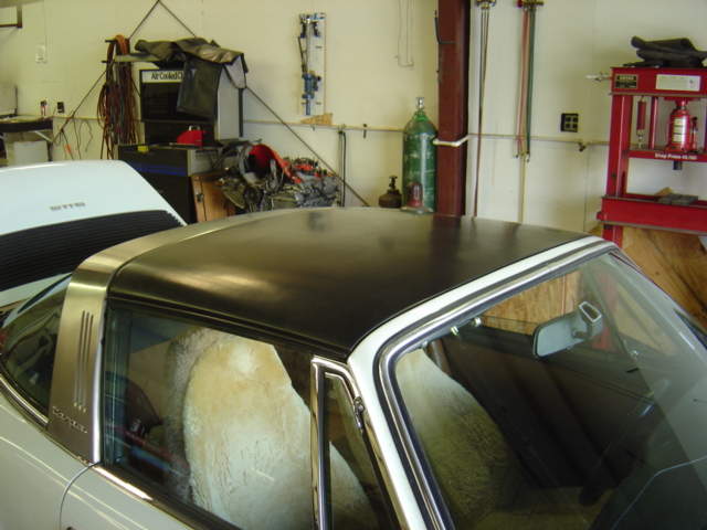 Wegens enkele vragen over de sluiting van het dak, bijkomende foto's. De getoonde uitsparing is er bij elke Targa van 1975 tot 1982. Je moet enkel het "plaatje" kopen, of zelf maken, het vinyl wat wegsnijden en bevestigen op de voorzieningen. Klaar.