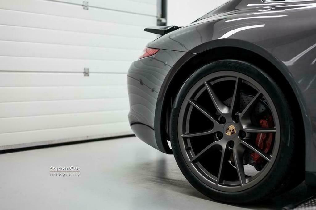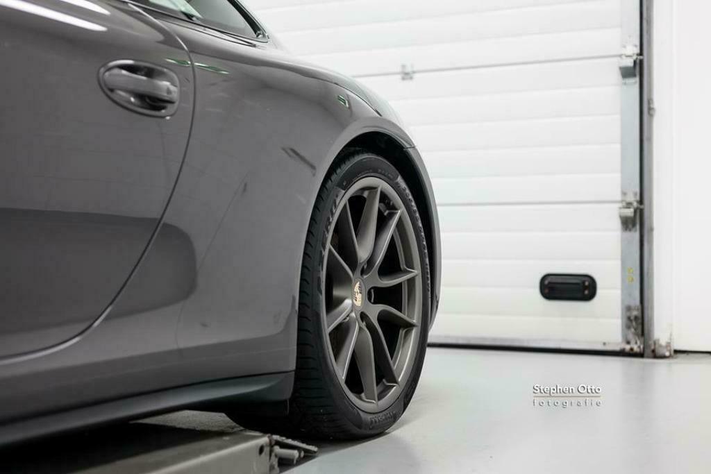 Zeer mooie set Porsche 911/991 velgen Carrera (20 inch) in de kleur zijdeglans platinum grijs. De set is nieuw gekocht bij een Porsche centrum in 2015 als winterset.