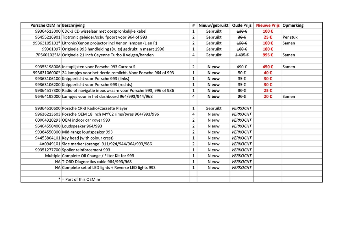 Bericht PRIJSVERLAGING : Nieuwe/gebruikte onderdelen 964 993 Cayenne