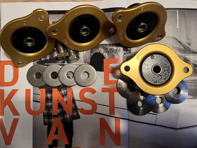 - Set van 4 WEVO motor- en baksteunen (G-model met 915) met zwarte pillows (iets zachter / stiller dan de blauwe) gekocht bij Twinsparkracing