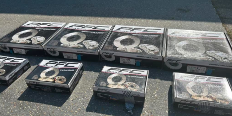 De set wordt geleverd inclusief gebruikte remblokken van PFC en Manthey.