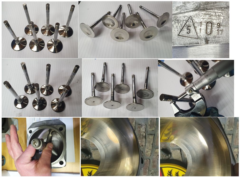 -Alle kleppen vallen nog binnen de maattolerantie. -Inlaatkleppen zien er nieuw uit -> zie foto's -Zuigers in zeer goede staat; de olie"nerven" aan de zijkanten zijn allemaal nog in zeer goede staat. -Ik zou de zuigerveren vervangen, in de verkoop incl een nieuw set van Mahle.