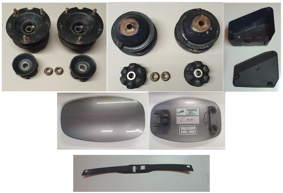 Tankdeksel (2 kleine deukjes) : 75 Euro Lagering achterste schokdempers (top): 175 Euro Langsdrager ophanging voor: 100 Euro Krikpunt (uitgeslepen) vooraan: 45 Euro Matten haakjes (licht geroest): 10 Euro Alu afdekplaat oliekoeler (rechts vooraan): 35 Euro Benzinepomp deksel: 35 Euro Achter ophanging instelarm: 125 Euro Sierlijst kofferklep: 80 Euro Release kabel achterklep: 45 Euro Handrem mechanisme: 75 Euro Deur actuator (rubber gescheurd):125 Euro Relais kast + deksel: 85 Euro Instelringen achterste schokdempers (ringen zitten vast): 50 Euro Achterste veren OEM (geen foto in bijlage) :80 euro