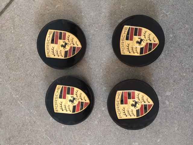 zoek 4 stuks zwarte Porsche velgendeksel/naafkap 76 mm