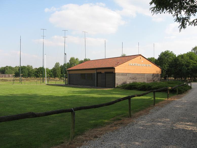 12. Groote Heide, met op de achtergrond het gebouw van het Akkermansgilde, en de schietbaan.