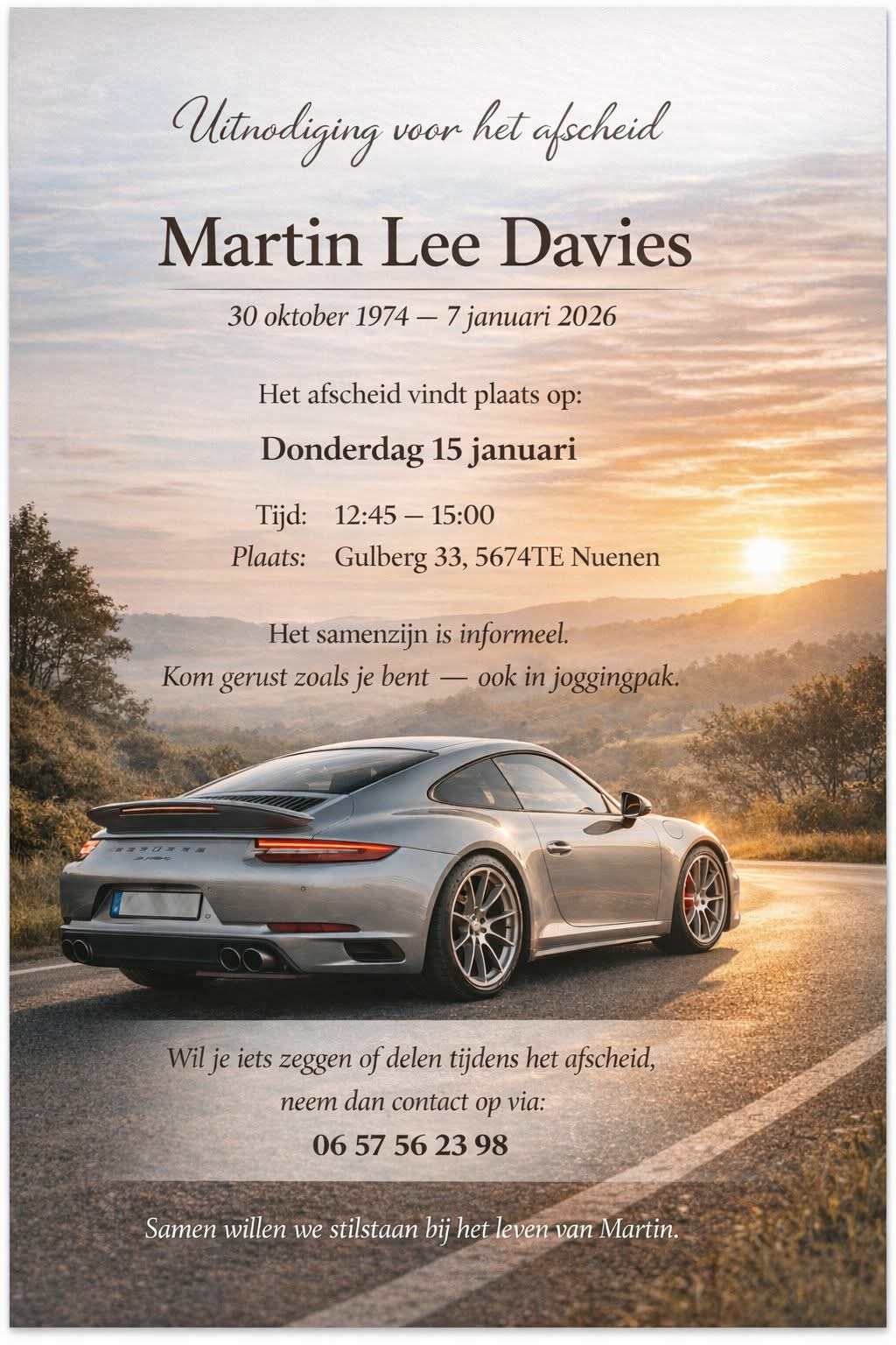 Wat een verschrikkelijk nieuws. Ik kocht van Martin een paar jaar terug Cup 1 velgen voor mijn 928, herinner me nog een leuk gesprekje naast een parkeergarage bij Eindhoven airport waar we hadden afgesproken voor de overdracht. RIP Martin.