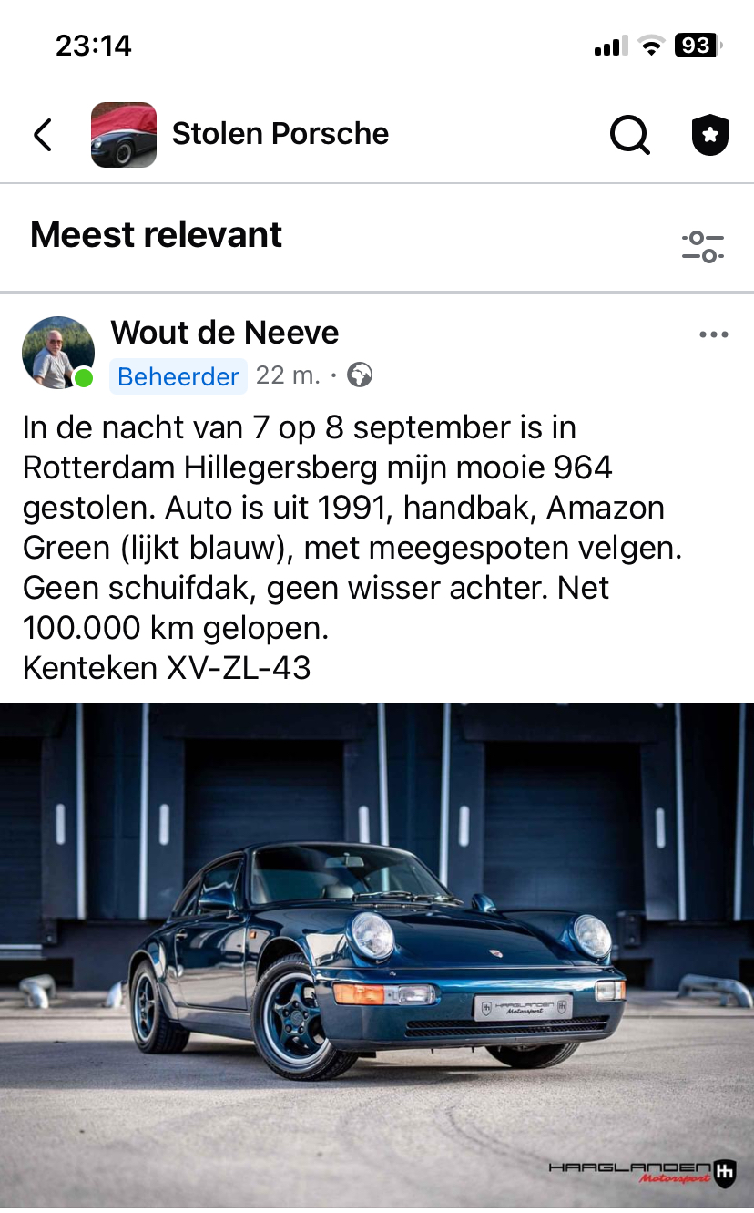 Als iemand dit kan posten in de Facebook groep over gestolen Porches -> heel graag. Heb zelf geen Facebook