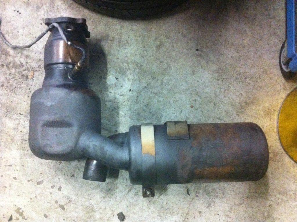 ok, bedankt heren, de uitlaat komt onder mijn auto vandaan. Is in goede staat, beetje blauw uitgeslagen van de hitte.