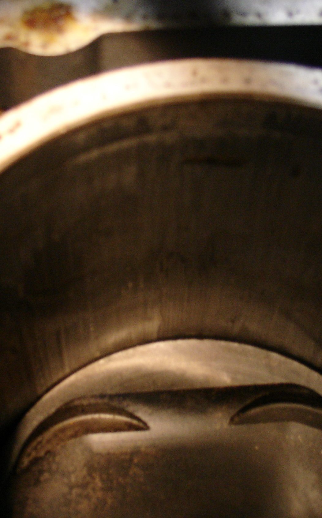 hierbij een fotootje. Het is niet zo heel duidelijk vanwege de restricties op file formaat, maar net boven de zuiger in het midden van de foto kan je het scheurtje zien..