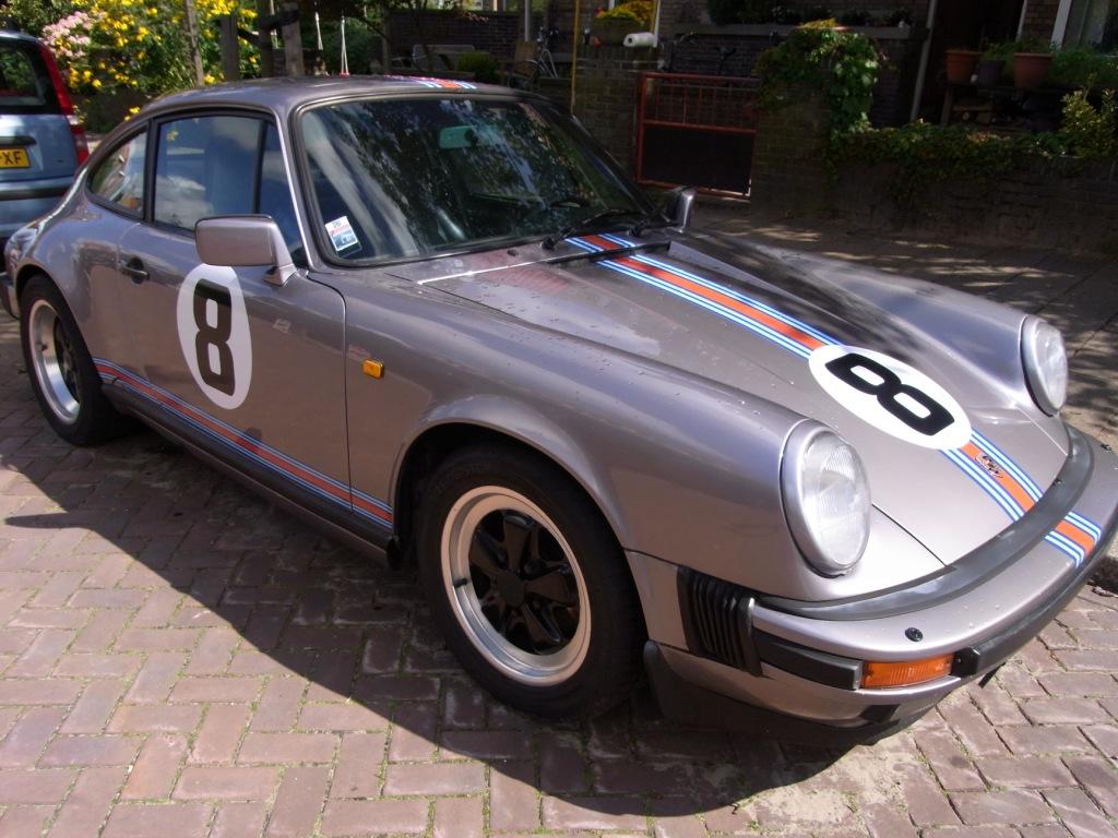 Heb trouwens besloten dat ik beide zijkanten van de P anders ga bestickeren (f*ck de symmetrie). Een kant laat ik zoals het is, de ander krijgt een ronde sticker met de 8 erin (zoals voorop) en een dunne Martini streep onder aan de deur. Deze is besteld en hoop ik een dezer dagen binnen te krijgen. Komt het toch nog af voor de 911 stedentocht. Ik denk dat ik het stickeren daarbij laat. Heb nog wel bij Vistaprint een stickertje gemaakt met nederlandse vlaggetjes en de namen van de coureur en bijrijders (in dit geval ook de kids, die daar beretrots op zijn).