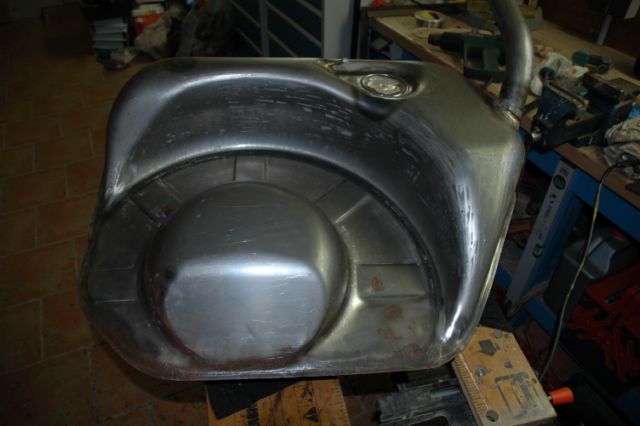 Laten draaien op een betonmolen met kiezels/schroeven/bouten/moeren, daarna tankseal kitje. (Ontvetten en 2 componenten sealer)