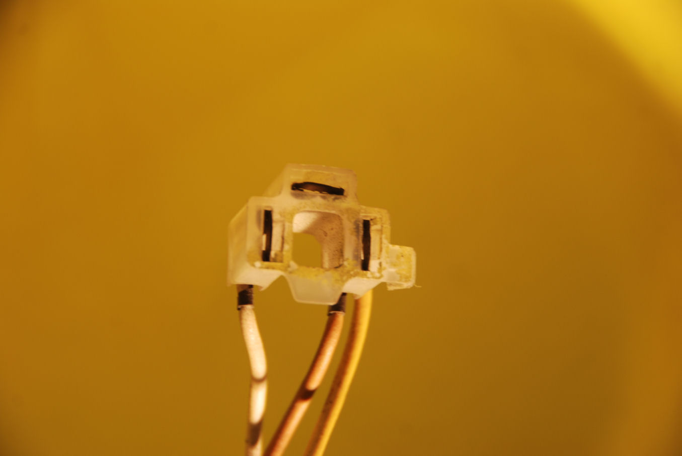 Dit is de achterkant van de boschkoplamp, met twee aansluitpunten. Een voor het dimlicht/grootlicht (bovenste 3 polig) en een voor het stadslicht (onderste, twee polig).