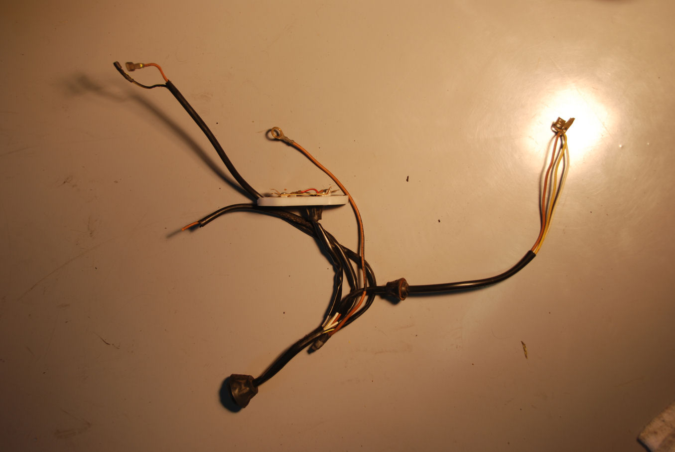 De rood/grijze draad is van het stadslicht; dus die moet ik waarschijnlijk verbinden met het kleine lampje in de koplamp.