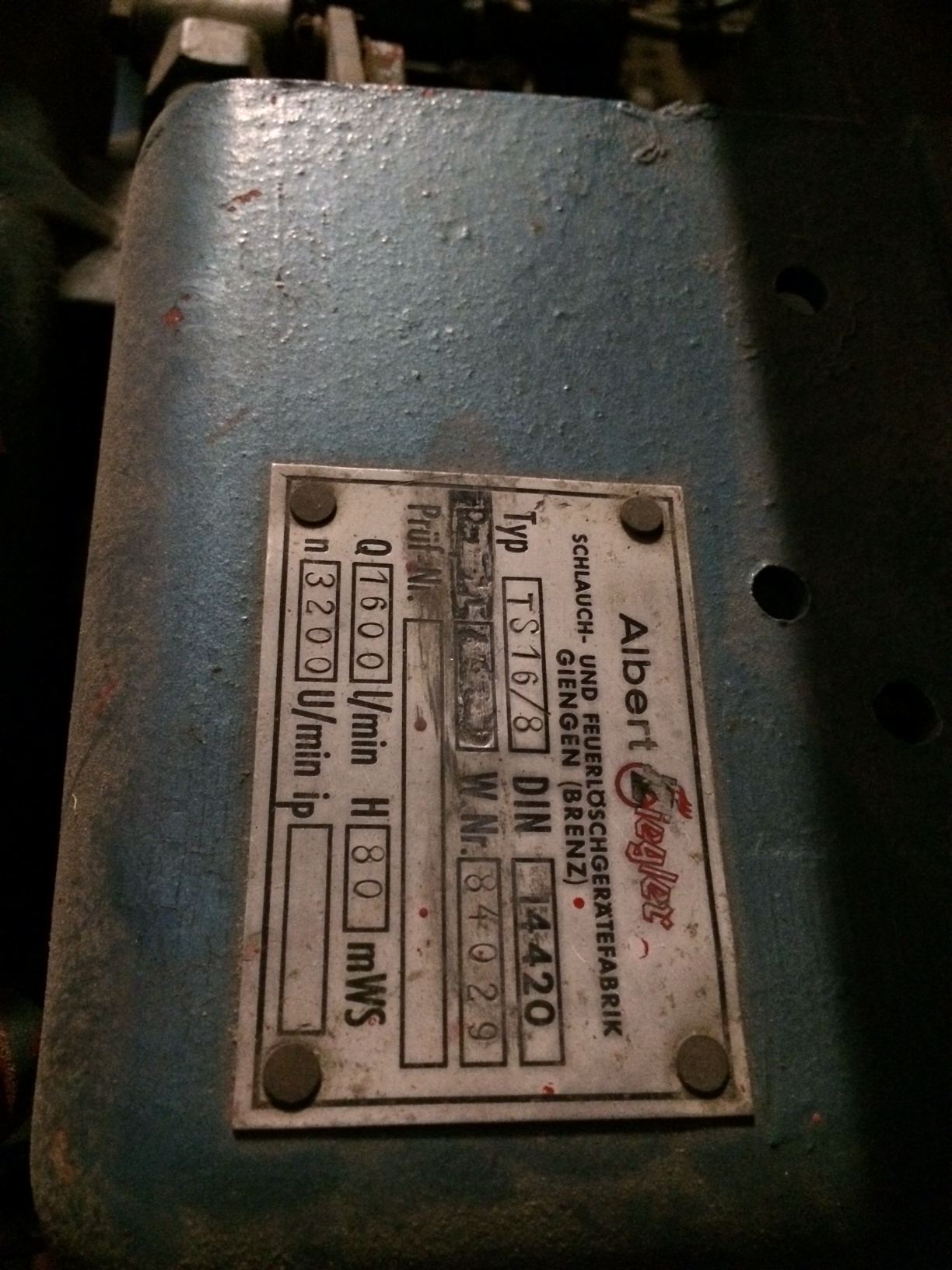 Ziegler brandweerpomp installatie met Porsche 1582cc (356) motor type 616/13. Bouwjaar is 1961