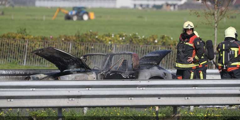 De brandweer heeft het vuur geblust, maar de auto is verwoest. De wegafsluiting leidde rond 13.45 uur tot een file van drie kilometer.