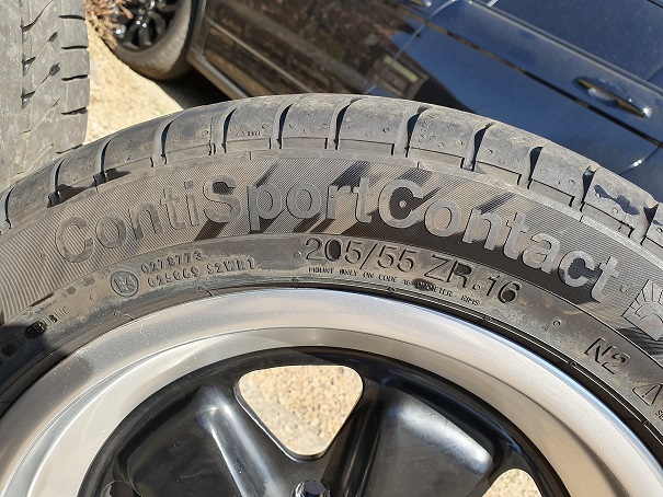 Voorbanden: +/- 7 mm Conti Sportcontact 205/55 ZR 16 DOT 4616 (week 46 2016)