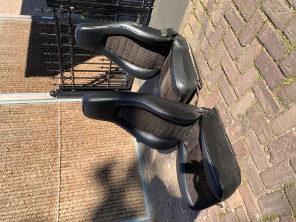 Nette pin stripe voorstoelen, voor 911 maar zijn vlgs mij ook in 924 en 944 geleverd. Schuim/wangen zeeg goede staat, leatherette zeer goede staat. pinstrip van 1 stoel heft lijm vlek en 2 kleine scheurtjes. doe een goed bod en ze zijn voor jou.