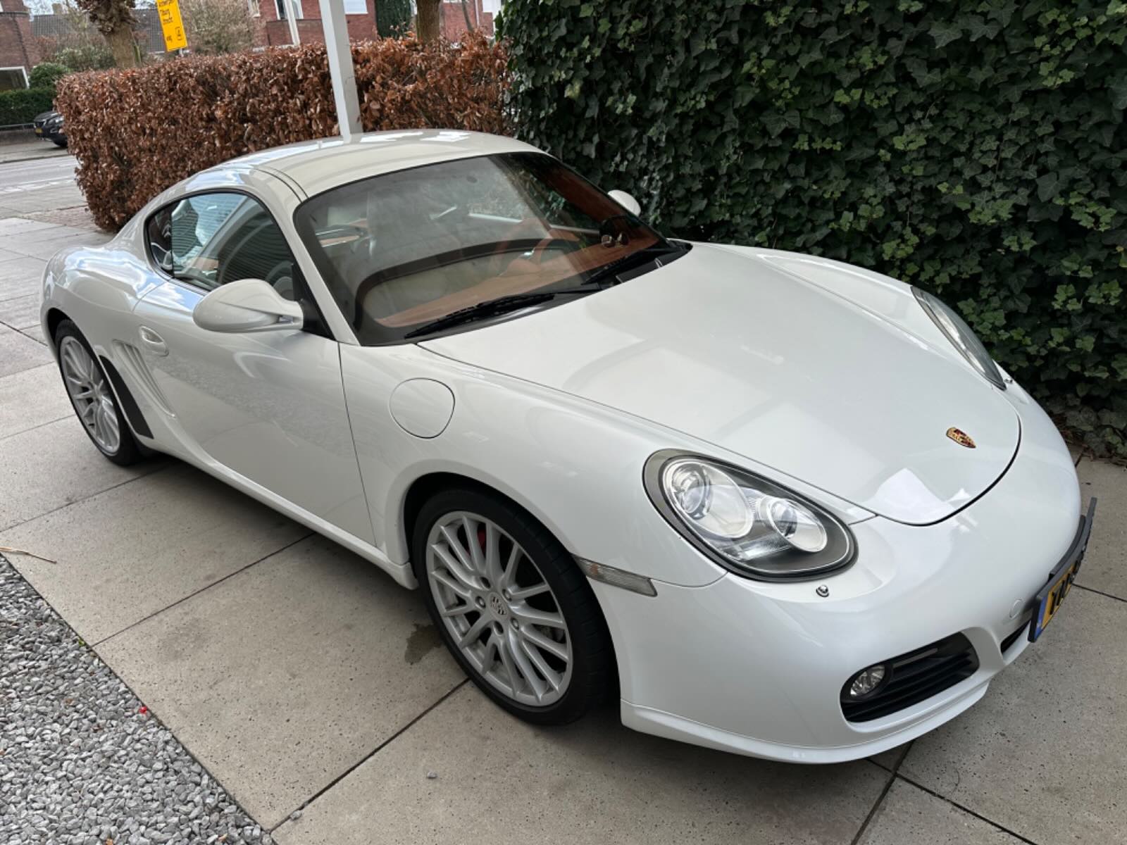 Ik heb deze Cayman S nog niet zo lang, en toen ik hem kreeg was hij dringend aan wat aandacht toe. Ik heb hem dat gegeven zodat hij er nu weer fris bij staat. Ik heb zelf ook een 997.2 en hoewel de Cayman wellicht de betere sportauto is rijdt ik zelf liever in de 911. Deze is te goed om te lang stil te laten staan dus moet ik met pijn in mijn hart afscheid nemen van de Cayman. Ik had nog het plan om er een trackday auto van te maken, maar ook daar heb ik uit respect voor de auto uiteindelijk niet voor gekozen. Daardoor zijn BV remleidingen al wel RVS en zijn er nog geen 1000km geleden Ferrodo DS2500 remblokken op gekomen (originele zijn er ook nog bij). Tevens is er een set Team Dynamics 18" wielen bij met Nanking AR1's (banden voor zijn nog goed, achter kun je denk ik nog een trackday uit persen) Deze set heb ik gebruikt gekocht maar zijn toen de nieuwe banden er op gingen opnieuw gepoedercoat.