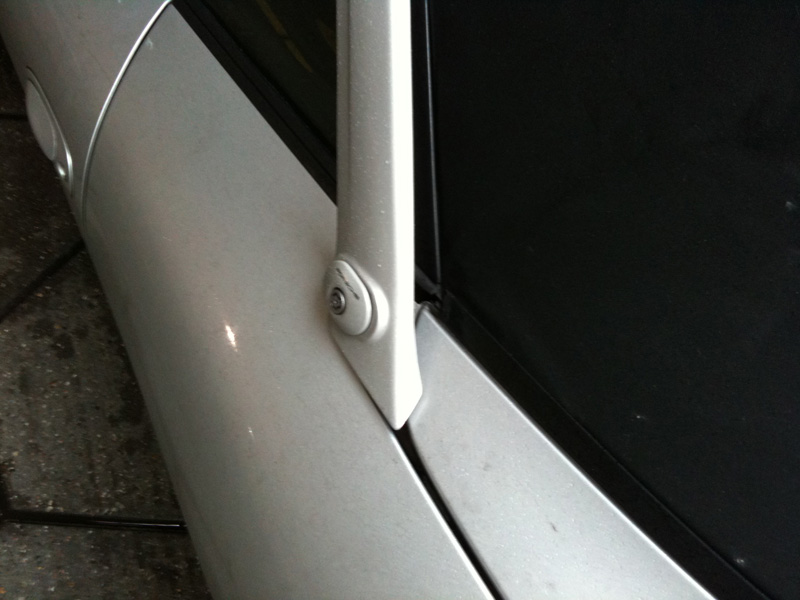Volgens mij zit die cabrio-drager-beugel aan de raamstijl (voor) en aan de koets (achter) :wink: