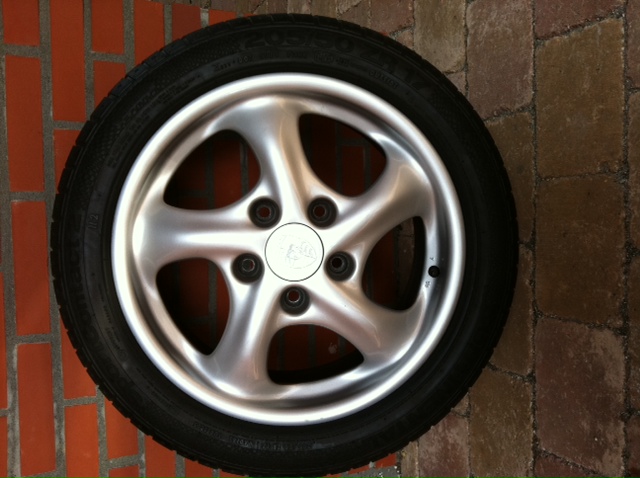 Met de Porsche - en gooien de oude velgen + banden bij Henk in de tuin :mrgreen: